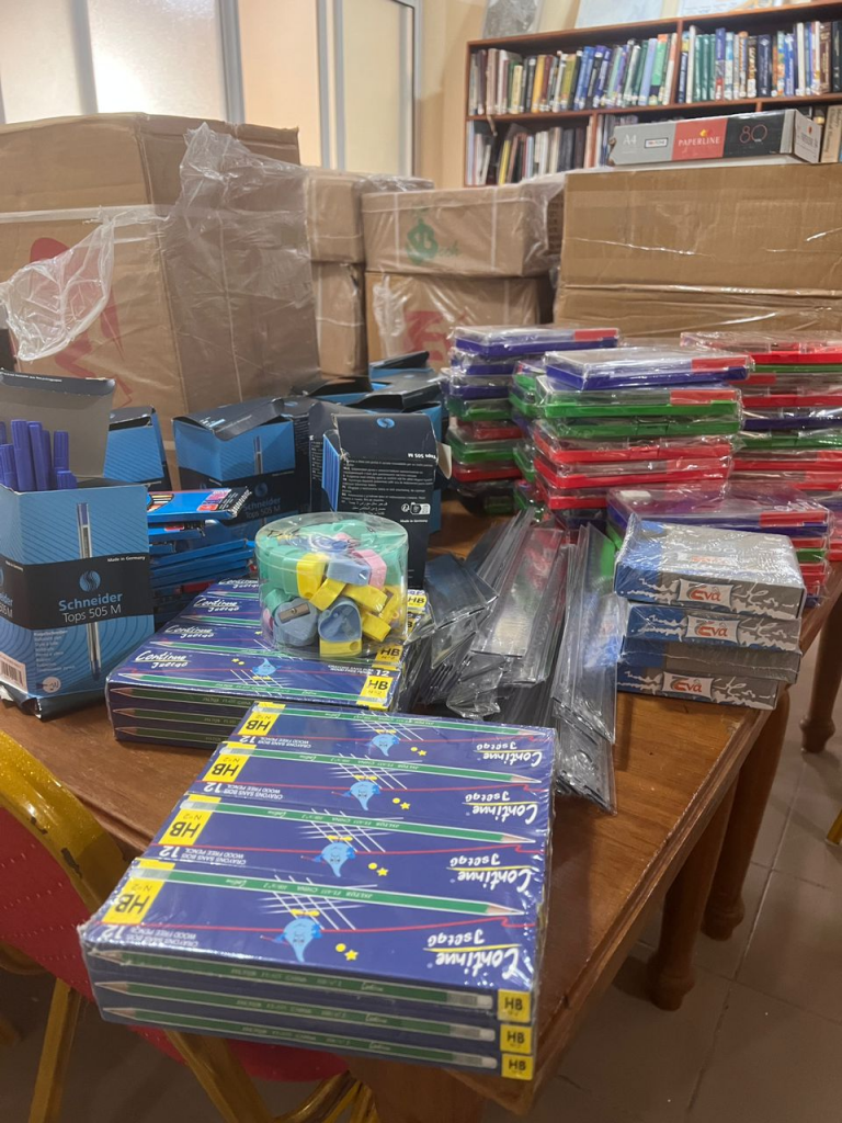 This is the period all over the world when the education of children is at the heart of every parent, government, and society. So, we thought is wise to help parents and we could see on their faces when we gave them the materials, ” TFF Executive Director said. She added that: “They were so happy because they were not expecting these books and the other items” . The donated items included books, realms of paper, rulers, pens, math set and other didactics. The items were handed to beneficiaries from nursery schools through primary, secondary and university.